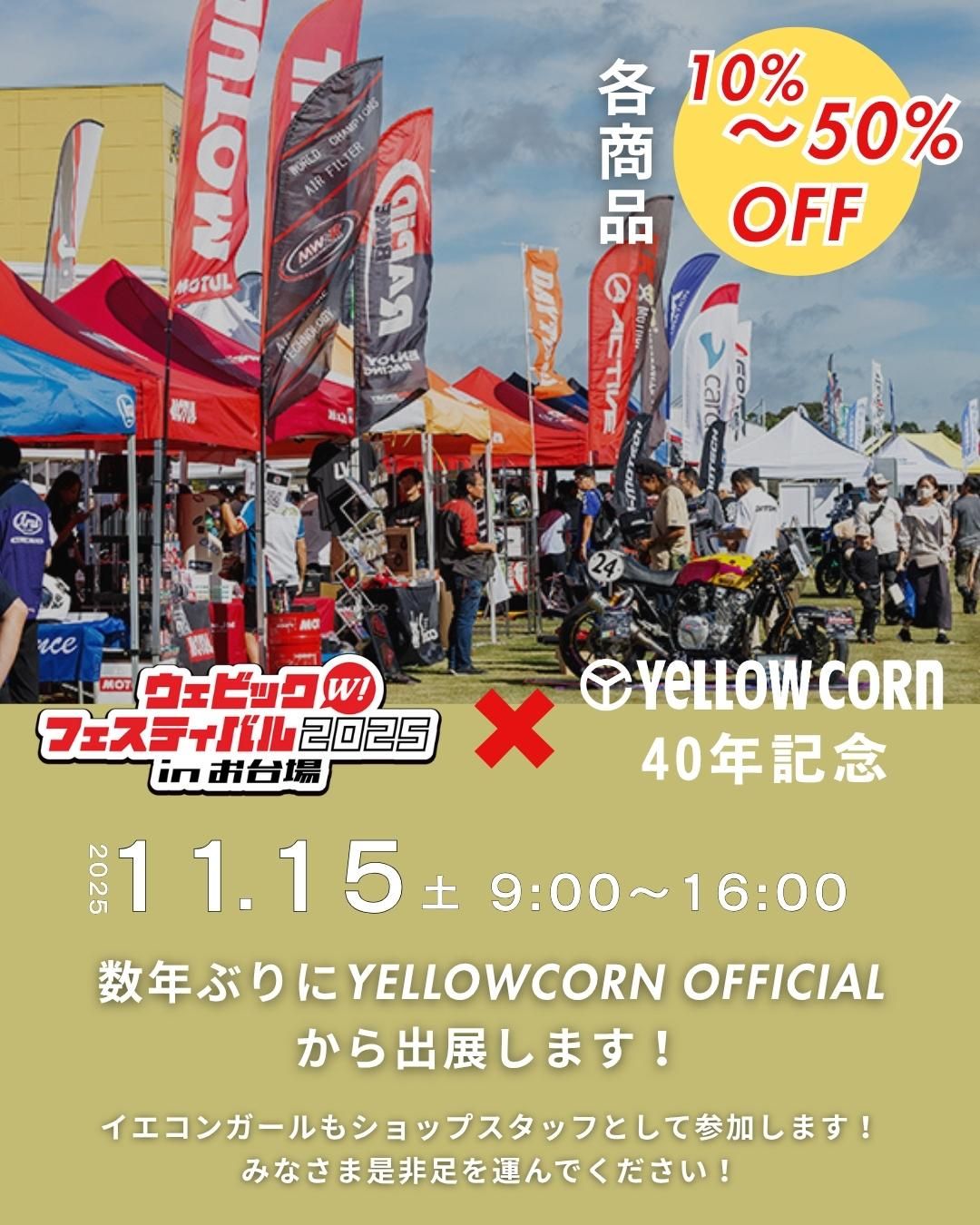 2025年11月15日(土)9:00~16:00 YELLOW CORN OFFICIAL から数年ぶりに ウェビックフェスティバルへ出展します! YELLOW CORN STREETの商品がイベント限定価格で手に入るチャンス! イエコンガールもショップスタッフとして参加します。 みなさま是非足を運んでください!